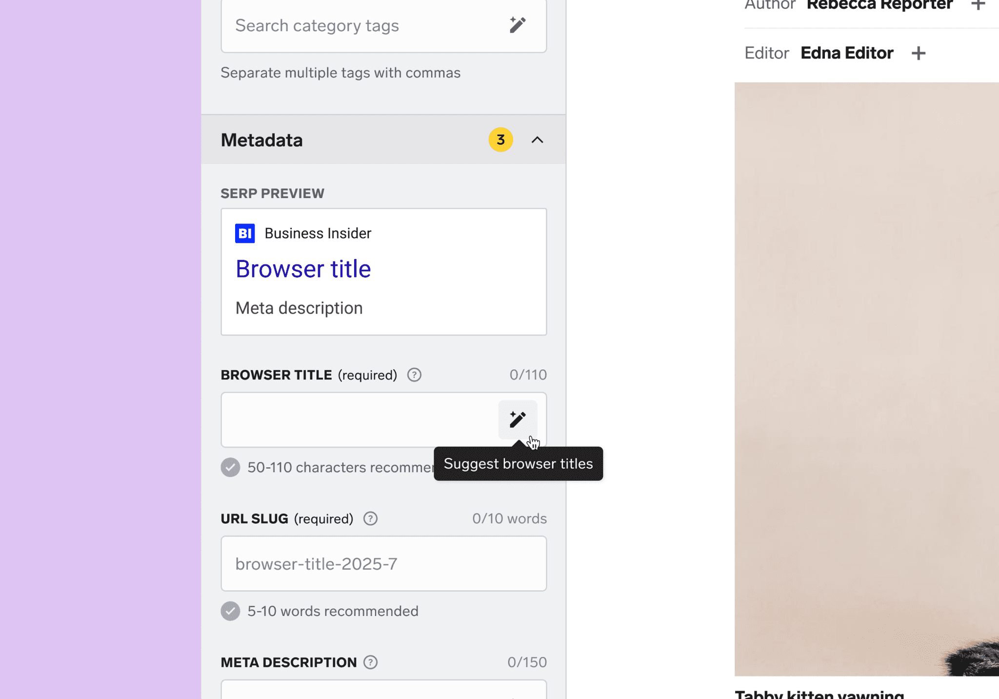 Meanwhile, tedious metadata tasks like URL slugs, summaries, and tags were time-consuming but critical. And no one had yet defined what “editorial-safe AI” should look like.